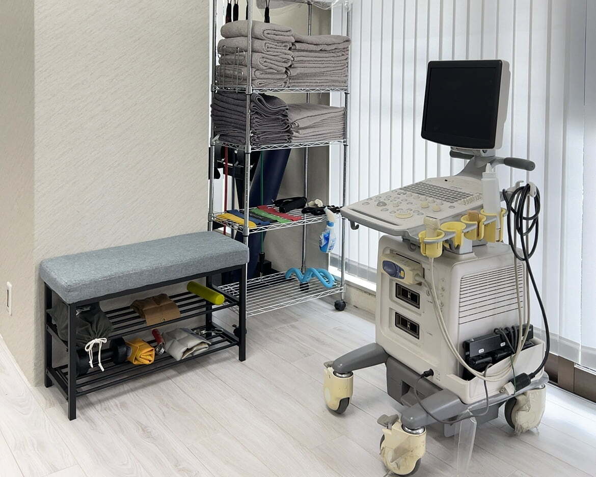 超音波で骨癒合を促進する治療器です。これまで、骨が癒合する(くっつく)までただ待っていた治療期間を、最大で40%短縮できる画期的な治療法です。治療時はゼリーをつけたプローブを患部に当てるだけで全く痛みは感じません。